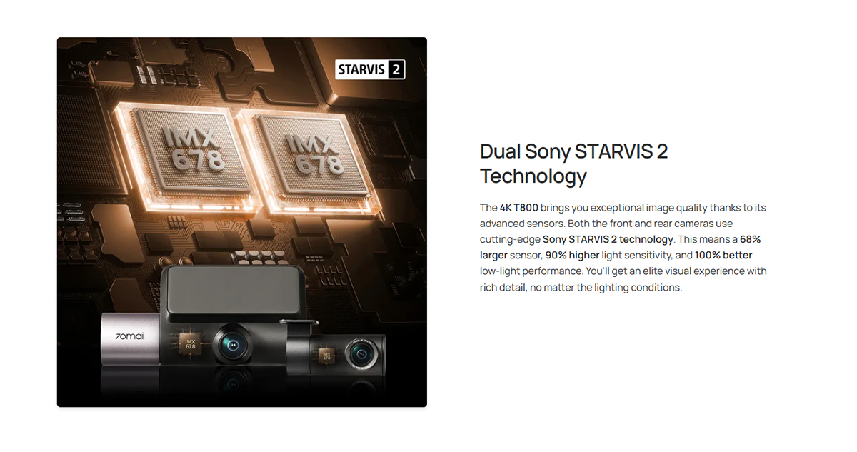70mai Lumi Vision za parkiranje je prva tehnologija u industriji kamera za aute dizajnirana za osiguravanje jasne vidljivosti oko vozila u gotovo potpunom mraku.